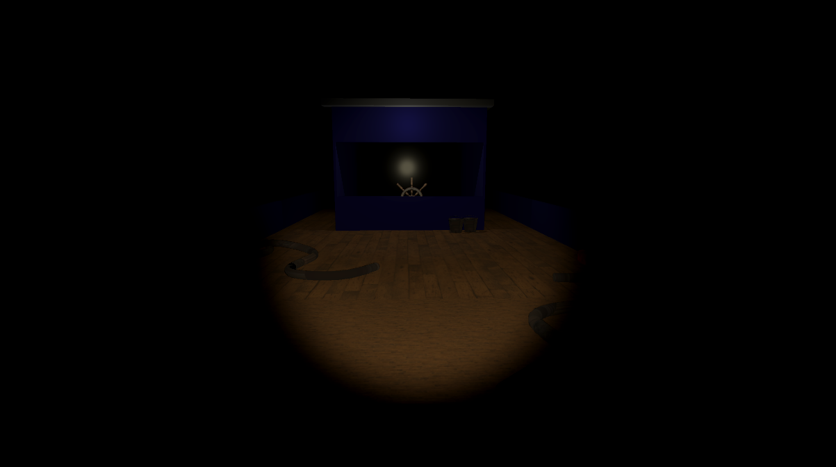 Set entirely on a boat surrounded by pitch-black ocean, the experience relies on subtle environmental cues — creaking wood, distant splashes, blinking navigation lights — to keep you on edge.